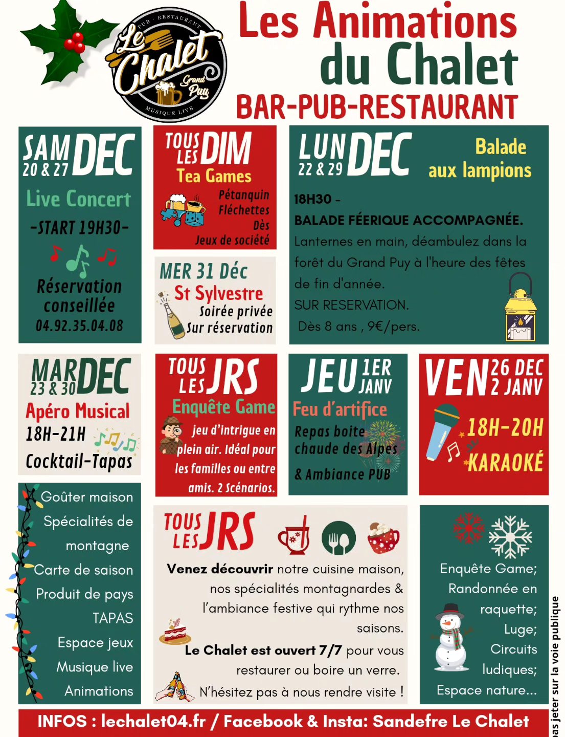 Du 20/12/2025 au 04/01/2026 tous les jours.