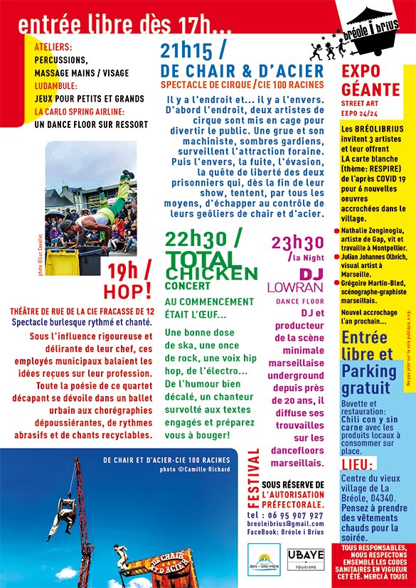 PreviousNext PreviousNext Date(s) Date(s) 31 juillet 2020 Présentation Description Festival des Breole i Brius, centre village la Bréole. Emails breoleibrius@gmail.com Page facebook https://www.facebook.com/media/set/?vanity=BreoleIBrius&set=a.3734598063241467 Géolocalisation